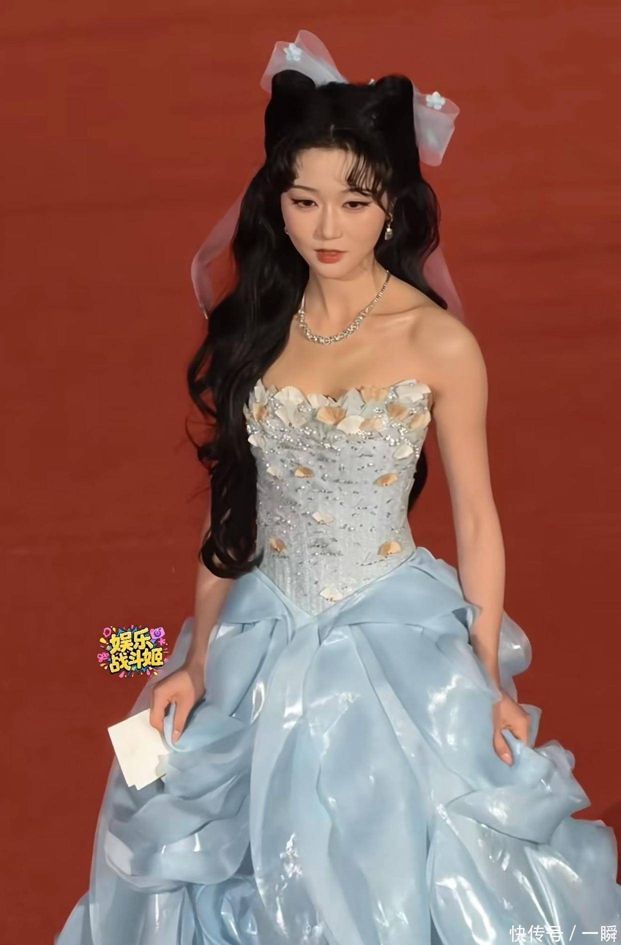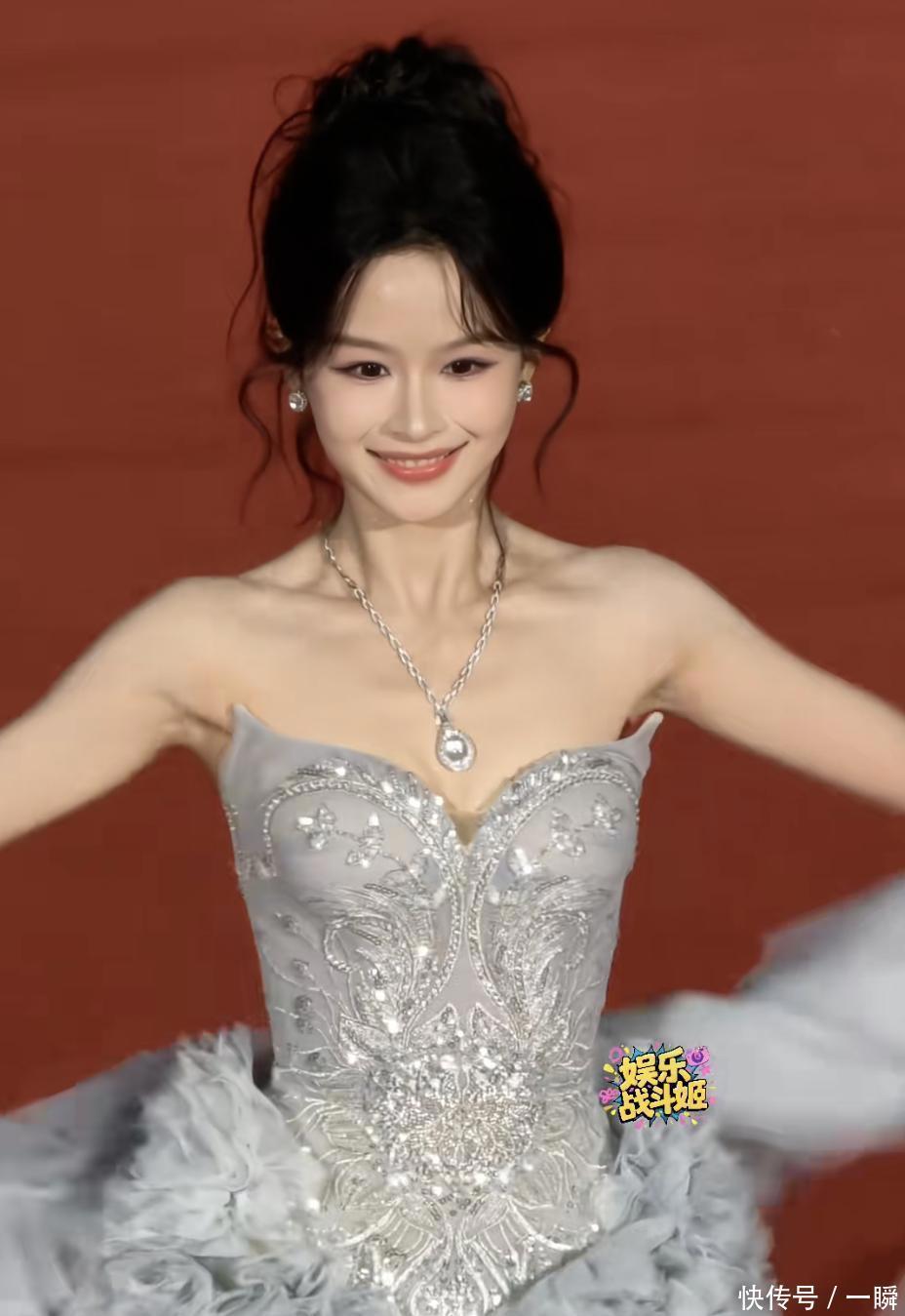 今年三月份第一次走红毯时,余茵的妆容出了点状况,结果变成了“见光死”,被不少人调侃了好一阵子。之后她似乎找到了适合自己的风格,这次走红毯时做了个盘发,穿着一袭灰色的公主裙,站在红毯上仰着下巴,自信满满地摆出各种姿势,就像个骄傲的公主似的。