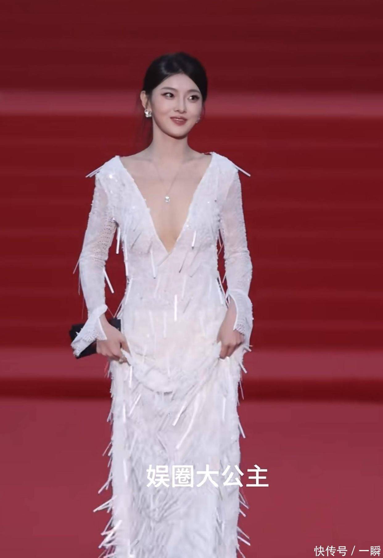 要是在同一场红毯上遇到撞衫,岂不是挺尴尬的?于是她赶紧换了个方案,换了一套白色深V长裙。身cm的山东大嫚,穿着这款长款礼服轻松搞定,气场十足,颜值也跟短剧里的模样差不多,非常出色。