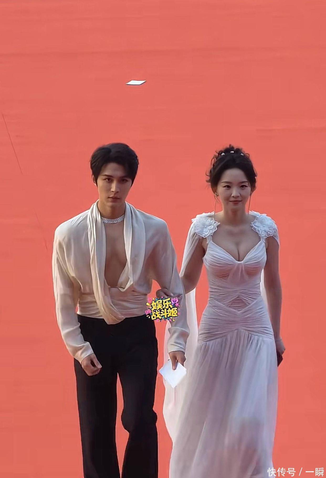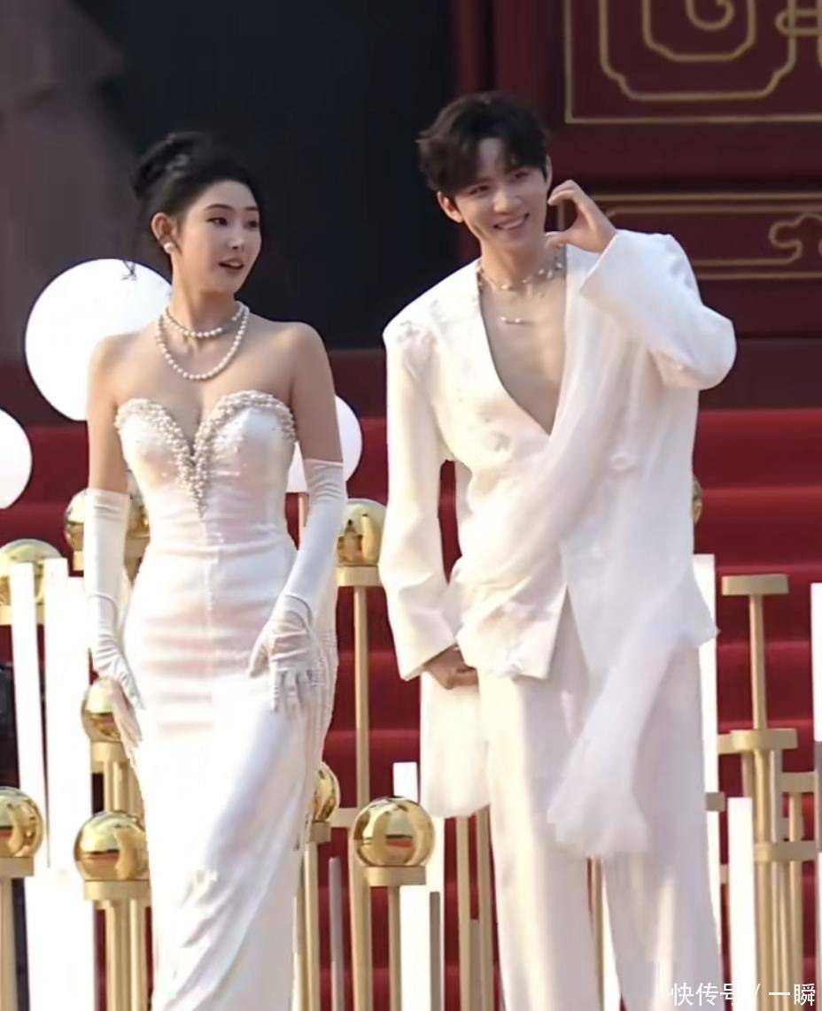 秦天爱和刘一隆这对CP是一起走的红毯,秦天爱的风采还挺惊喜,一身白色抹胸裙,看着优雅又漂亮,而刘一隆那套白色纱布西装嘛,感觉挺没有质感的。那款露半个胸肌的西装设计,再加上脖子上挂的叮叮当当的饰品,感觉挺廉价的。